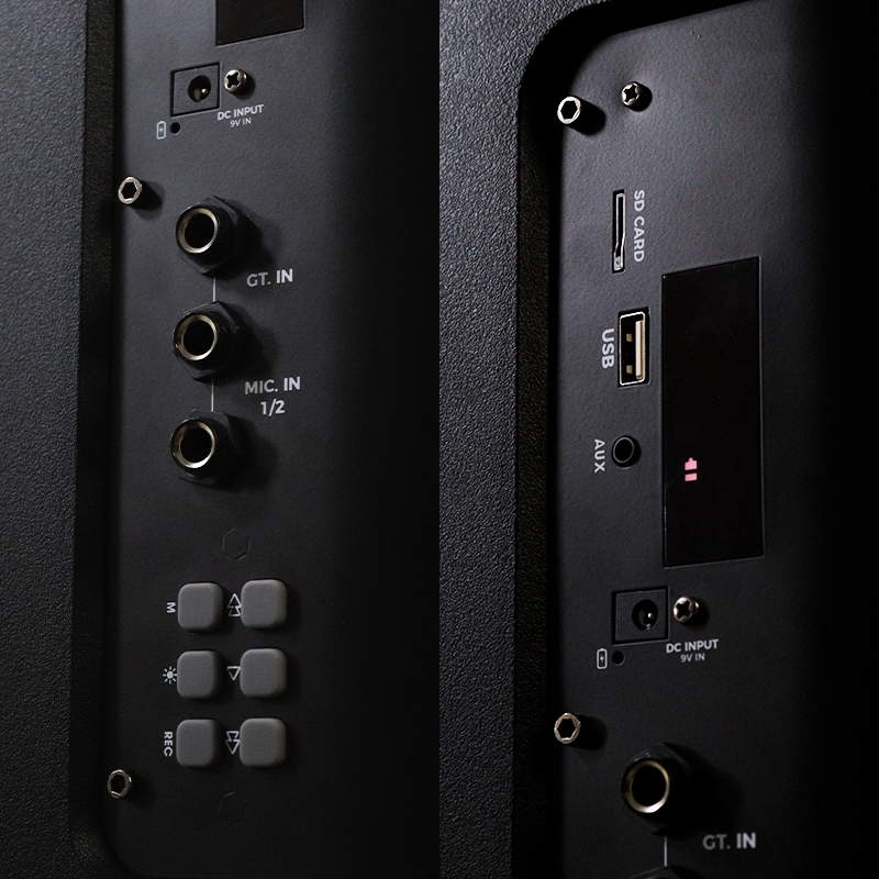 Sí. El PS2PRO+ cuenta con entrada para micrófono y guitarra, ideal para presentaciones, karaoke, eventos, ensayos o actividades en vivo. Ofrece múltiples opciones de conexión: Bluetooth 5.4, USB, tarjeta TF, radio FM y entradas de audio IN/OUT, brindando máxima versatilidad para cualquier uso.